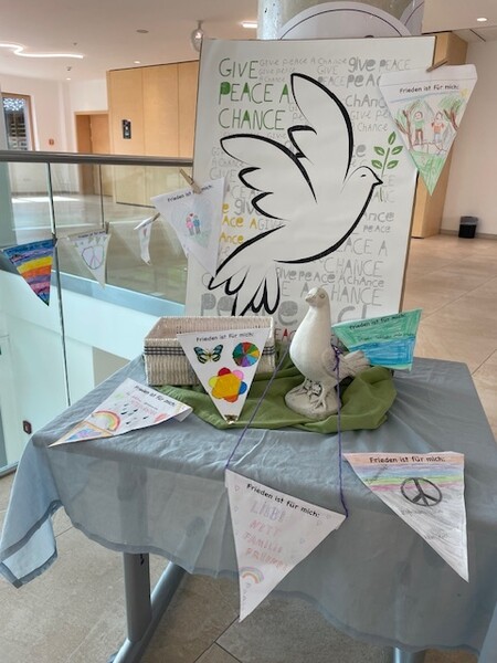 Anschließend wurde das Thema: „Frieden“ im Religionsunterricht vertieft und erarbeitet. Alle Schülerinnen und Schüler bekamen zum Abschluss ein Freundschaftsarmband. Das Band soll sie daran erinnern, dass wir alle miteinander verbunden sind und wir uns um Frieden in und außerhalb der Schule bemühen sollen. Andrea Figl
