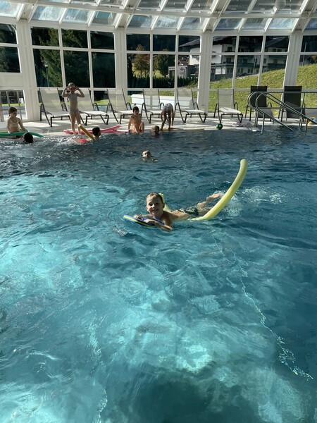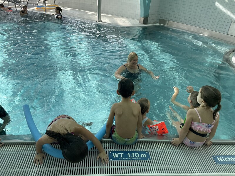 Am 15. Oktober 2025 fuhren die ersten Klassen gemeinsam nach Filzmoos ins Plitsch Platsch Hallenbad. Vor Ort konnten sich die Kinder im Wasser bewegen, spielen und ihr Schwimmkönnen herzeigen. Der Ausflug verlief reibungslos, die Kinder hatten sichtlich Freude an der gemeinsamen Aktivität. Nach einem ruhigen Rückweg kamen alle wohlbehalten und müde wieder in der Schule an.